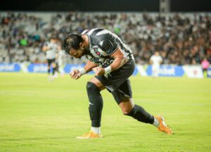 O atacante Thaciano voltou a balançar as redes e foi um dos poucos destaques do Santos na derrota por 2