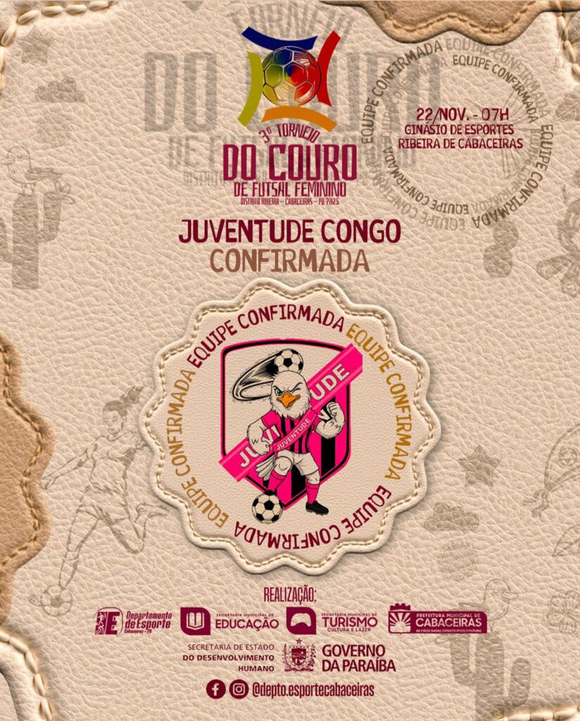 Desde já, a Prefeitura Municipal de Cabaceiras, convida os desportistas e amantes do futsal para prestigiarem aos jogos da 3ª edição do Torneio do Couro de Futsal Feminino,
